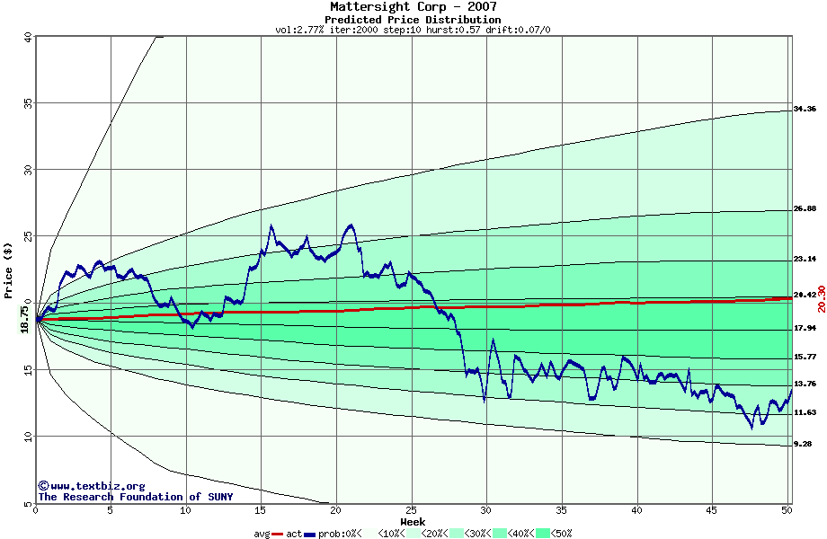 The following graph plots the year-to-date performance of the stock for 2007 compared to the probability calculated by a random walk model.