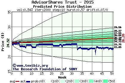 The following graph plots the year-to-date performance of the stock for 2015 compared to the probability calculated by a random walk model.