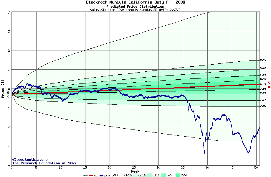 The following graph plots the year-to-date performance of the stock for 2008 compared to the probability calculated by a random walk model.