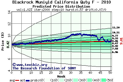 The high to date and low to date prices of the stock plotted against a random walk model for 2010 (what's this?).