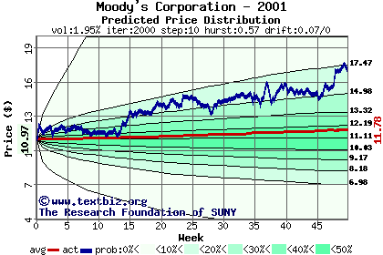 The following graph plots the year-to-date performance of the stock for 2001 compared to the probability calculated by a random walk model.