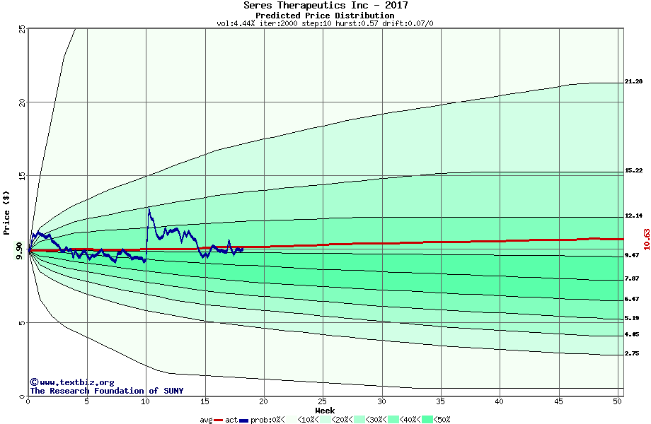 The following graph plots the year-to-date performance of the stock for 2017 compared to the probability calculated by a random walk model.