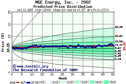 The following graph plots the year-to-date performance of the stock for 2002 compared to the probability calculated by a random walk model.
