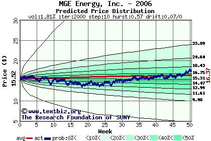 The following graph plots the year-to-date performance of the stock for 2006 compared to the probability calculated by a random walk model.