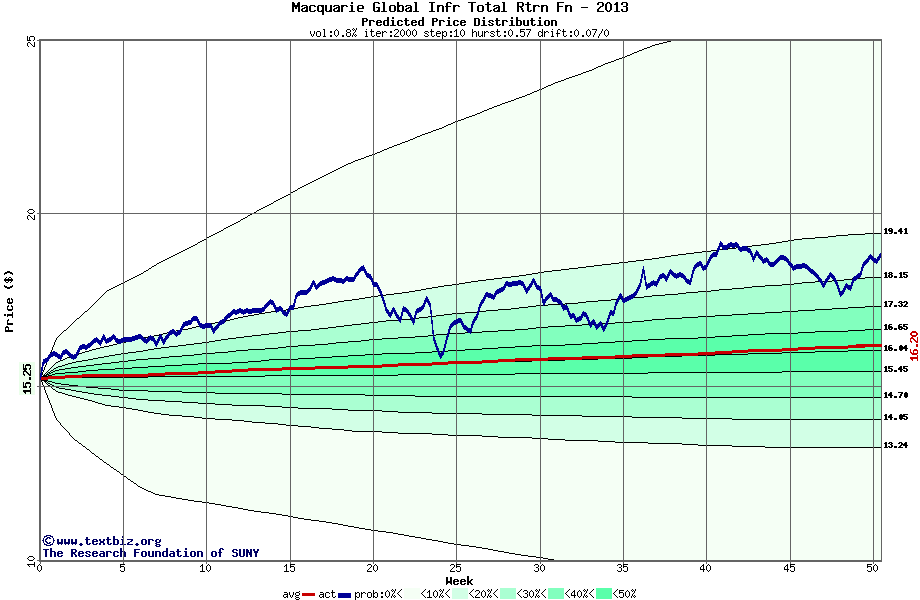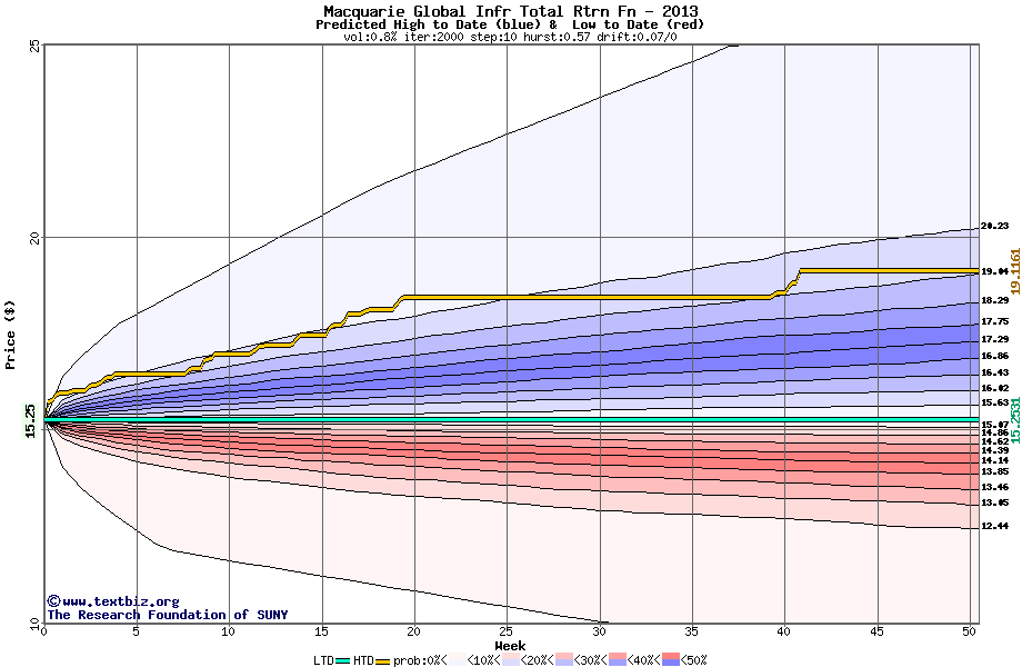 The following graph plots the year-to-date performance of the stock for 2013 compared to the probability calculated by a random walk model.