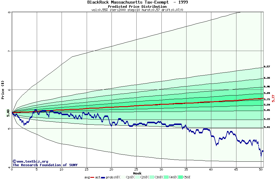 The following graph plots the year-to-date performance of the stock for 1999 compared to the probability calculated by a random walk model.