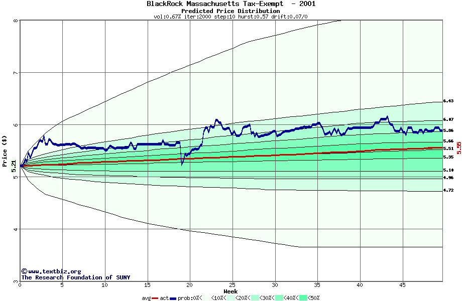 The following graph plots the year-to-date performance of the stock for 2001 compared to the probability calculated by a random walk model.
