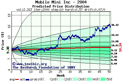 The following graph plots the year-to-date performance of the stock for 2004 compared to the probability calculated by a random walk model.