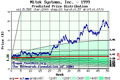 The following graph plots the year-to-date performance of the stock for 1999 compared to the probability calculated by a random walk model.