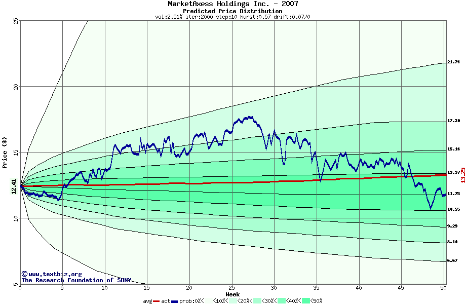 The following graph plots the year-to-date performance of the stock for 2007 compared to the probability calculated by a random walk model.