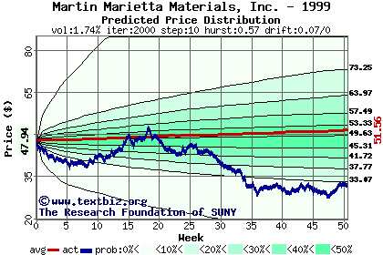 The following graph plots the year-to-date performance of the stock for 1999 compared to the probability calculated by a random walk model.