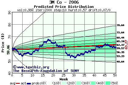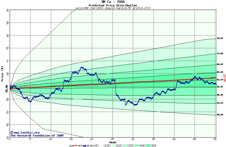 The following graph plots the year-to-date performance of the stock for 2006 compared to the probability calculated by a random walk model.