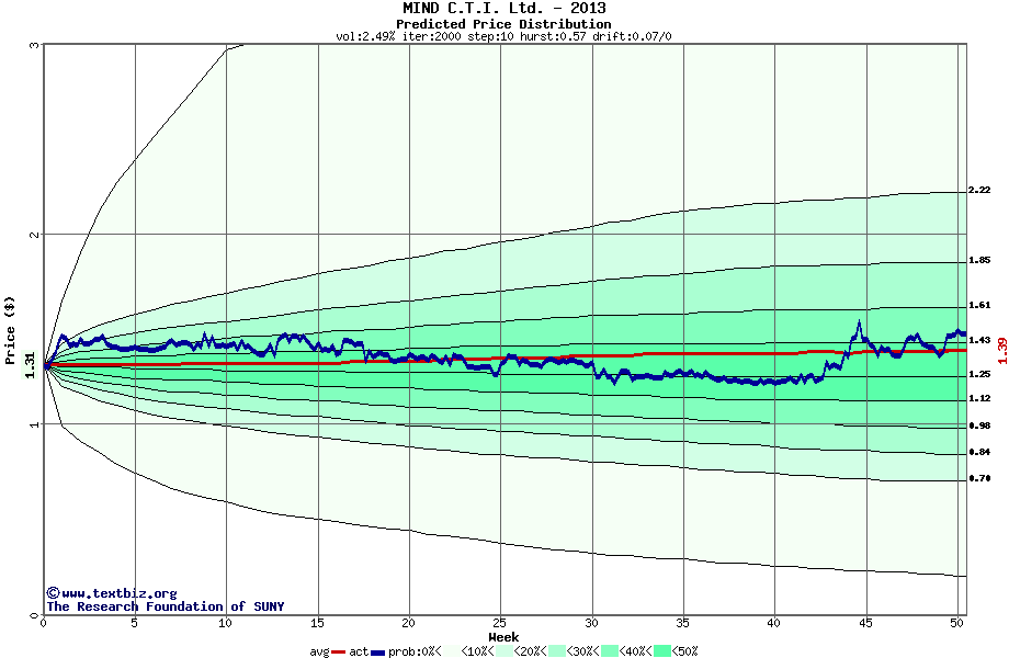 The following graph plots the year-to-date performance of the stock for 2013 compared to the probability calculated by a random walk model.