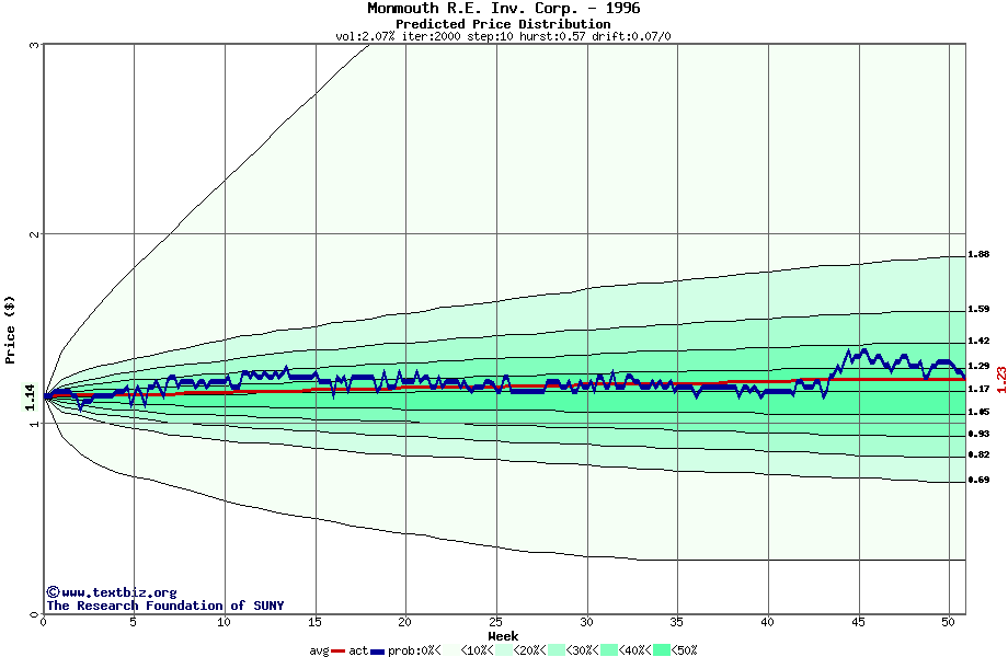 The following graph plots the year-to-date performance of the stock for 1996 compared to the probability calculated by a random walk model.