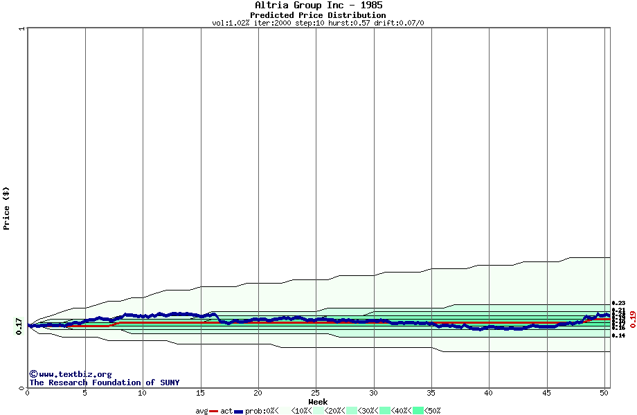 The following graph plots the year-to-date performance of the stock for 1985 compared to the probability calculated by a random walk model.
