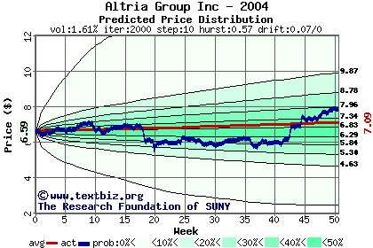 The following graph plots the year-to-date performance of the stock for 2004 compared to the probability calculated by a random walk model.