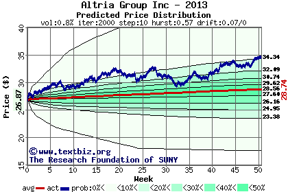 The following graph plots the year-to-date performance of the stock for 2013 compared to the probability calculated by a random walk model.