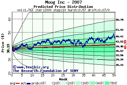 The following graph plots the year-to-date performance of the stock for 2007 compared to the probability calculated by a random walk model.