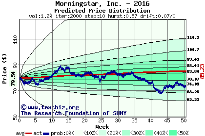 The following graph plots the year-to-date performance of the stock for 2016 compared to the probability calculated by a random walk model.
