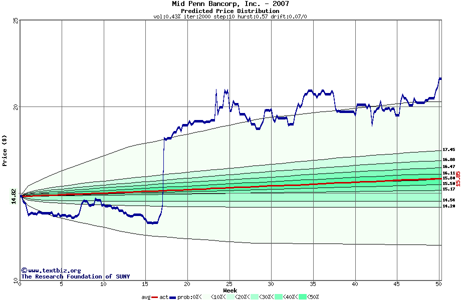 The following graph plots the year-to-date performance of the stock for 2007 compared to the probability calculated by a random walk model.