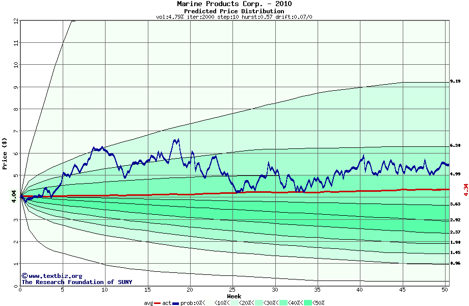 The following graph plots the year-to-date performance of the stock for 2010 compared to the probability calculated by a random walk model.