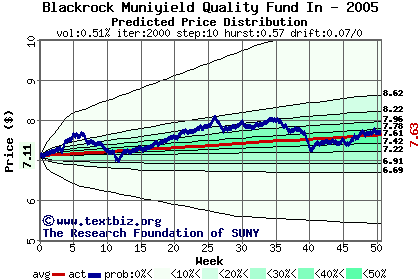 The following graph plots the year-to-date performance of the stock for 2005 compared to the probability calculated by a random walk model.