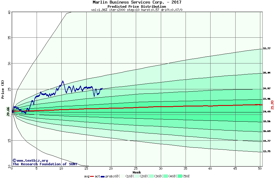 The following graph plots the year-to-date performance of the stock for 2017 compared to the probability calculated by a random walk model.