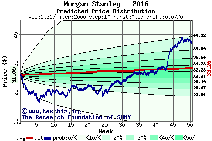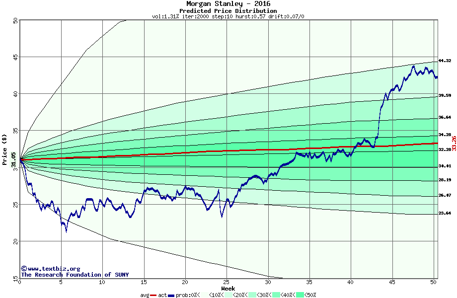 The following graph plots the year-to-date performance of the stock for 2016 compared to the probability calculated by a random walk model.