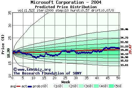 The following graph plots the year-to-date performance of the stock for 2004 compared to the probability calculated by a random walk model.