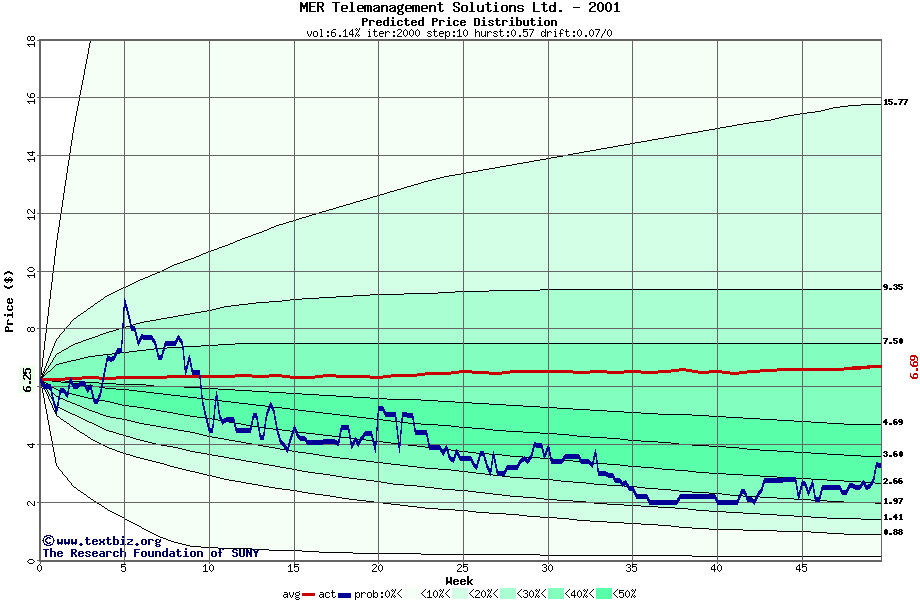 The following graph plots the year-to-date performance of the stock for 2001 compared to the probability calculated by a random walk model.