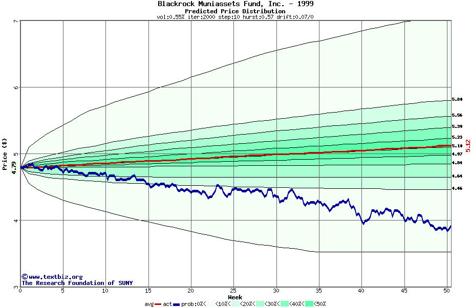 The following graph plots the year-to-date performance of the stock for 1999 compared to the probability calculated by a random walk model.