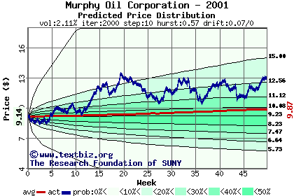The following graph plots the year-to-date performance of the stock for 2001 compared to the probability calculated by a random walk model.