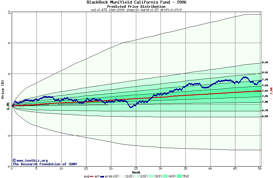 The following graph plots the year-to-date performance of the stock for 2006 compared to the probability calculated by a random walk model.