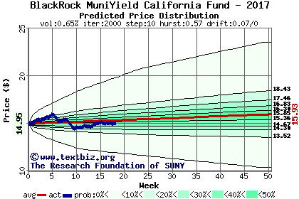 The high to date and low to date prices of the stock plotted against a random walk model for 2017 (what's this?).