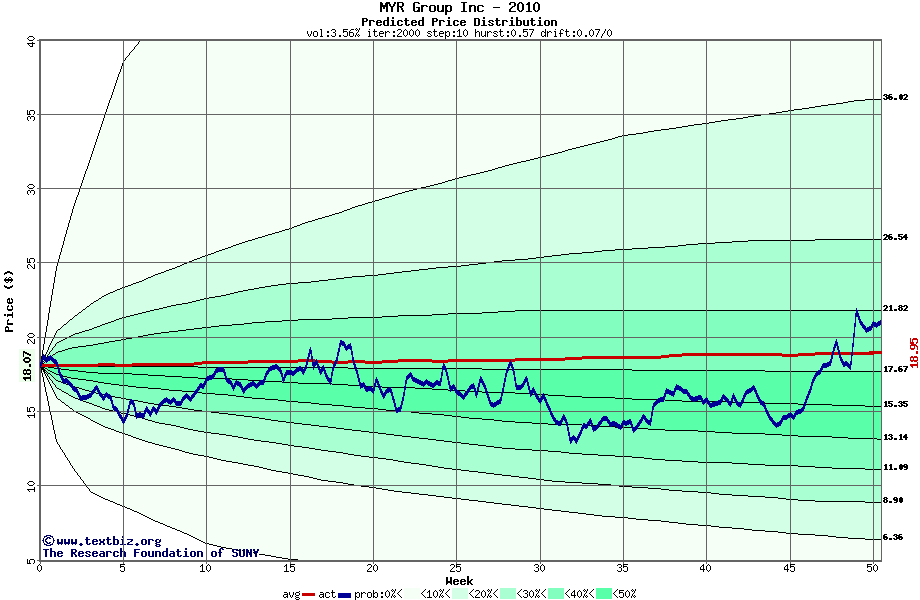 The following graph plots the year-to-date performance of the stock for 2010 compared to the probability calculated by a random walk model.