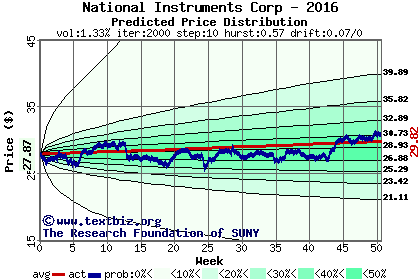 The following graph plots the year-to-date performance of the stock for 2016 compared to the probability calculated by a random walk model.