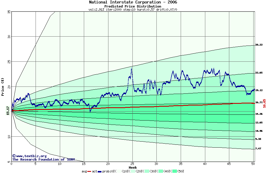 The following graph plots the year-to-date performance of the stock for 2006 compared to the probability calculated by a random walk model.