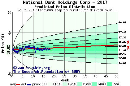The high to date and low to date prices of the stock plotted against a random walk model for 2017 (what's this?).