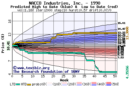 The following graph plots the year-to-date performance of the stock for 1990 compared to the probability calculated by a random walk model.