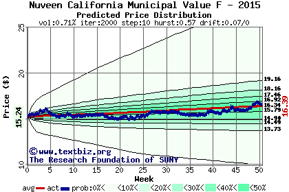 The following graph plots the year-to-date performance of the stock for 2015 compared to the probability calculated by a random walk model.