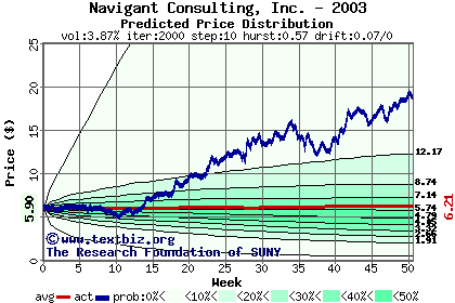 The following graph plots the year-to-date performance of the stock for 2003 compared to the probability calculated by a random walk model.