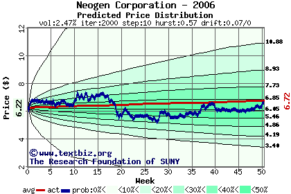 The following graph plots the year-to-date performance of the stock for 2006 compared to the probability calculated by a random walk model.
