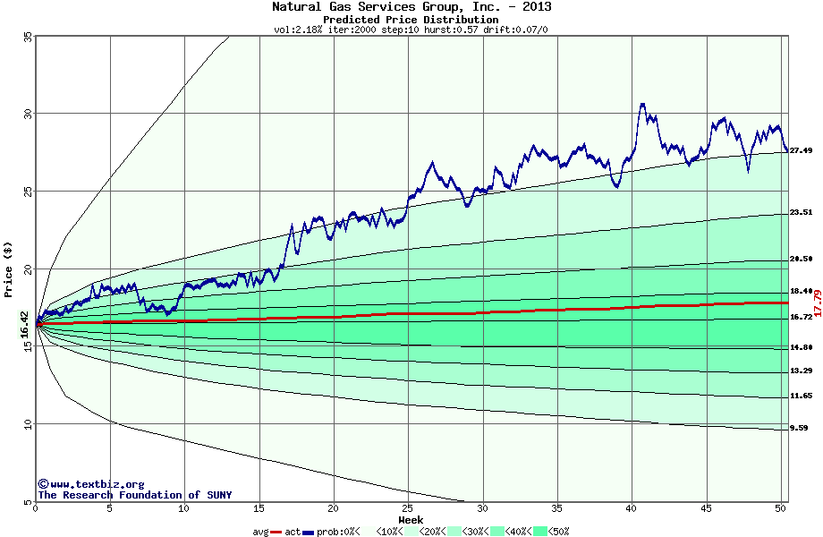 The following graph plots the year-to-date performance of the stock for 2013 compared to the probability calculated by a random walk model.