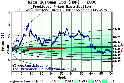 The following graph plots the year-to-date performance of the stock for 2000 compared to the probability calculated by a random walk model.