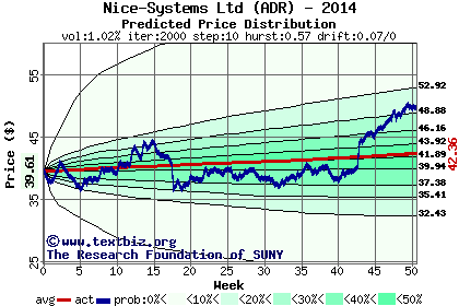 The following graph plots the year-to-date performance of the stock for 2014 compared to the probability calculated by a random walk model.
