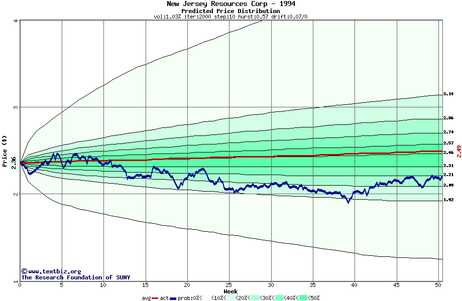 The following graph plots the year-to-date performance of the stock for 1994 compared to the probability calculated by a random walk model.