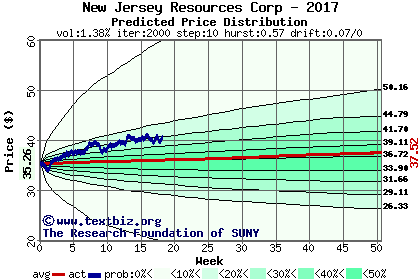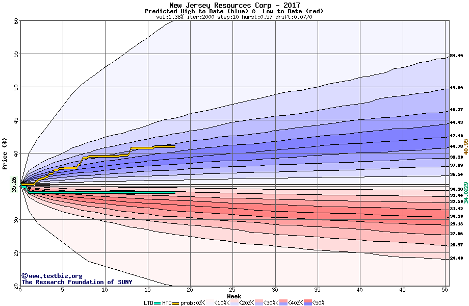 The following graph plots the year-to-date performance of the stock for 2017 compared to the probability calculated by a random walk model.