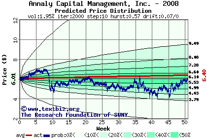 The following graph plots the year-to-date performance of the stock for 2008 compared to the probability calculated by a random walk model.