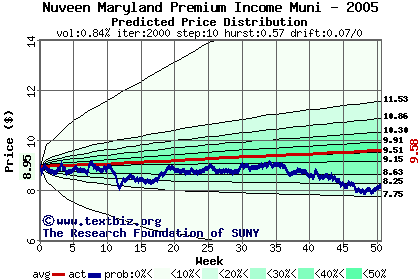The following graph plots the year-to-date performance of the stock for 2005 compared to the probability calculated by a random walk model.
