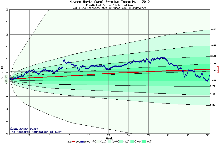 The following graph plots the year-to-date performance of the stock for 2010 compared to the probability calculated by a random walk model.